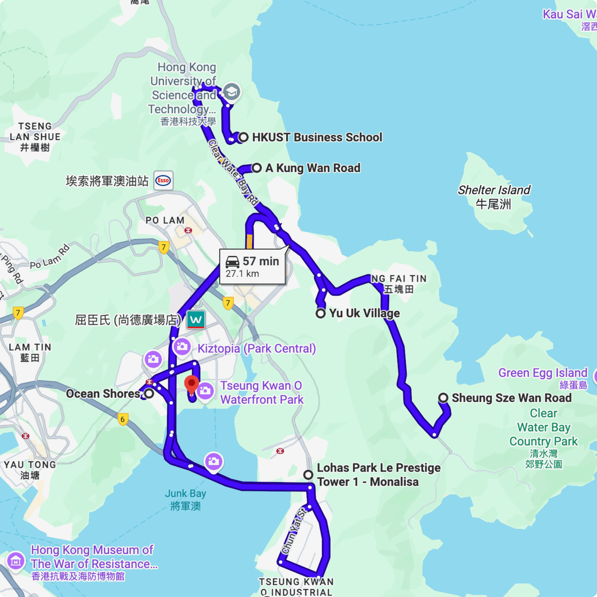 16:00 Alto Residences → Ocean Shores → LOHAS Park Le Prestige → HKUST → A Kung Wan