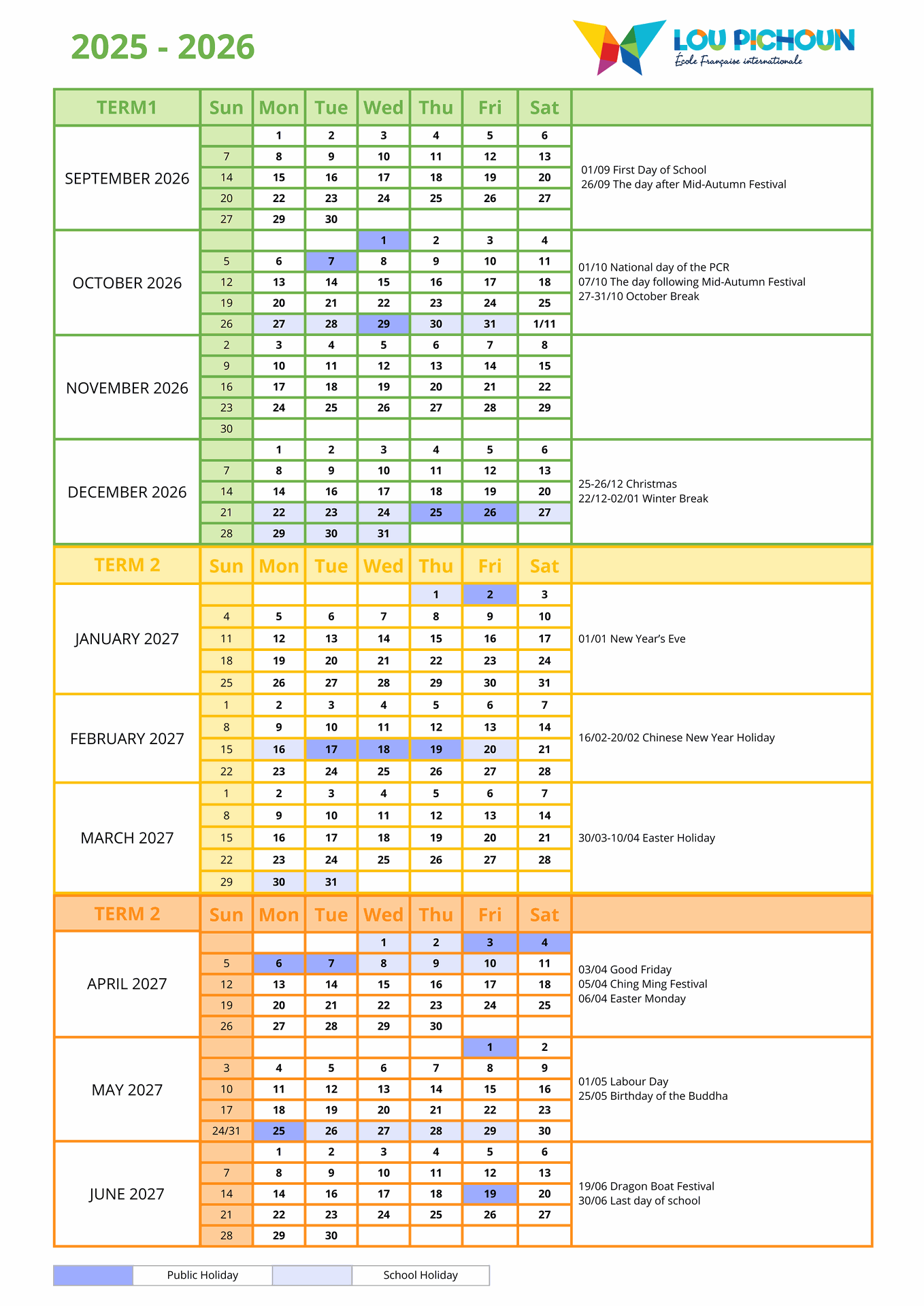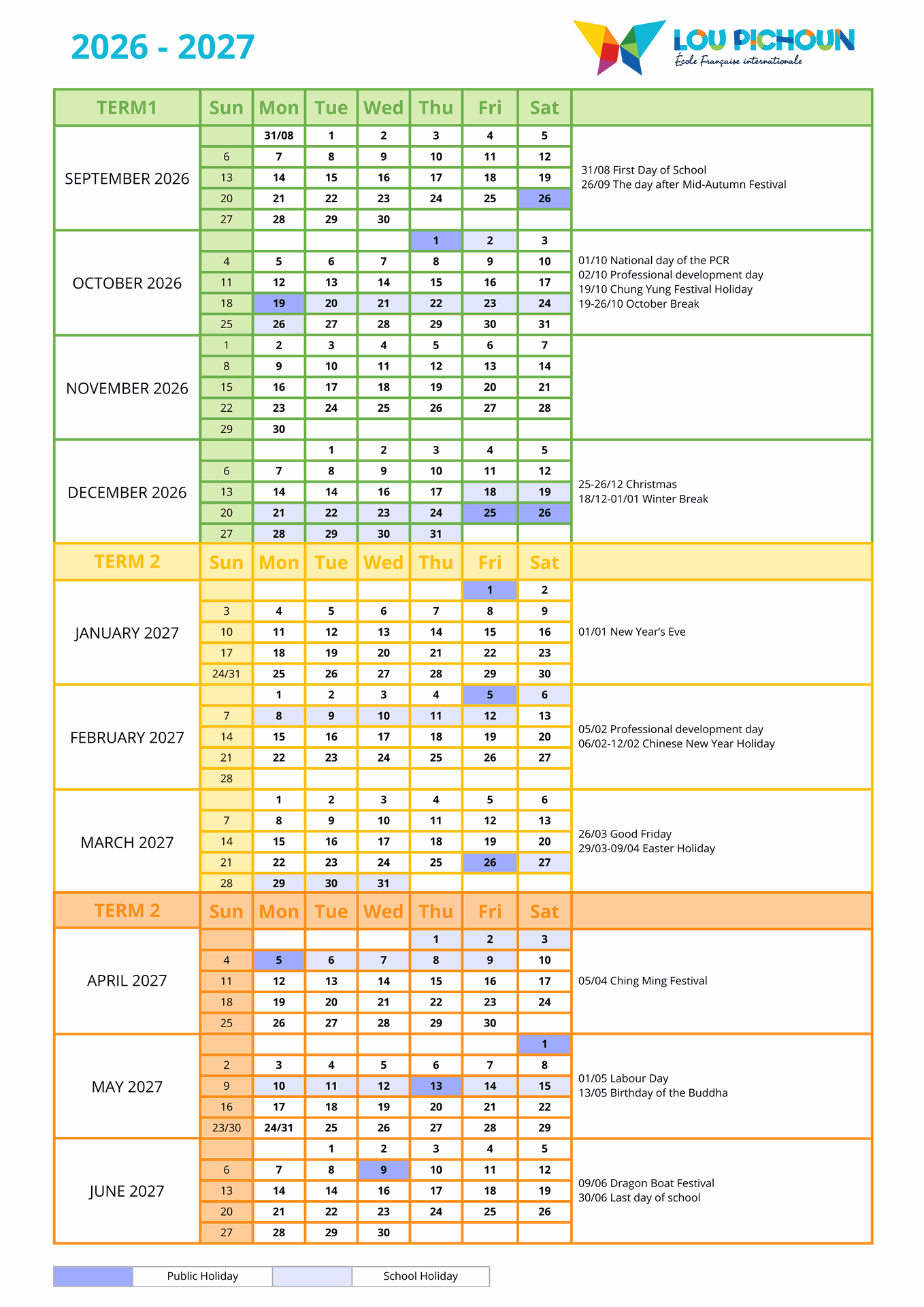 Please note that the calendar for 2026–2027 is provisional and may be subject to change.